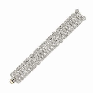 a fascia, interamente decorato da diamanti taglio vecchio e huit-huit per totale ct 14,00 circa. Peso g 88,90 [..]