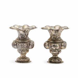 interamente sbalzati e cesellati. Peso g 280,00 h cm 14,00 diametro cm 11,50
