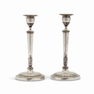 base circolare, fusto liscio, decoro in stile Impero. Peso g 960,00 h cm 27,50