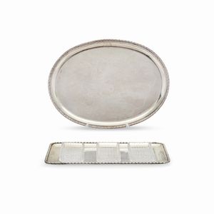 uno di forma rettangolare, l'altro ovale, con bordo mistilineo. Peso kg 1,980 cm 51,00x36,00, 38,50x28,50