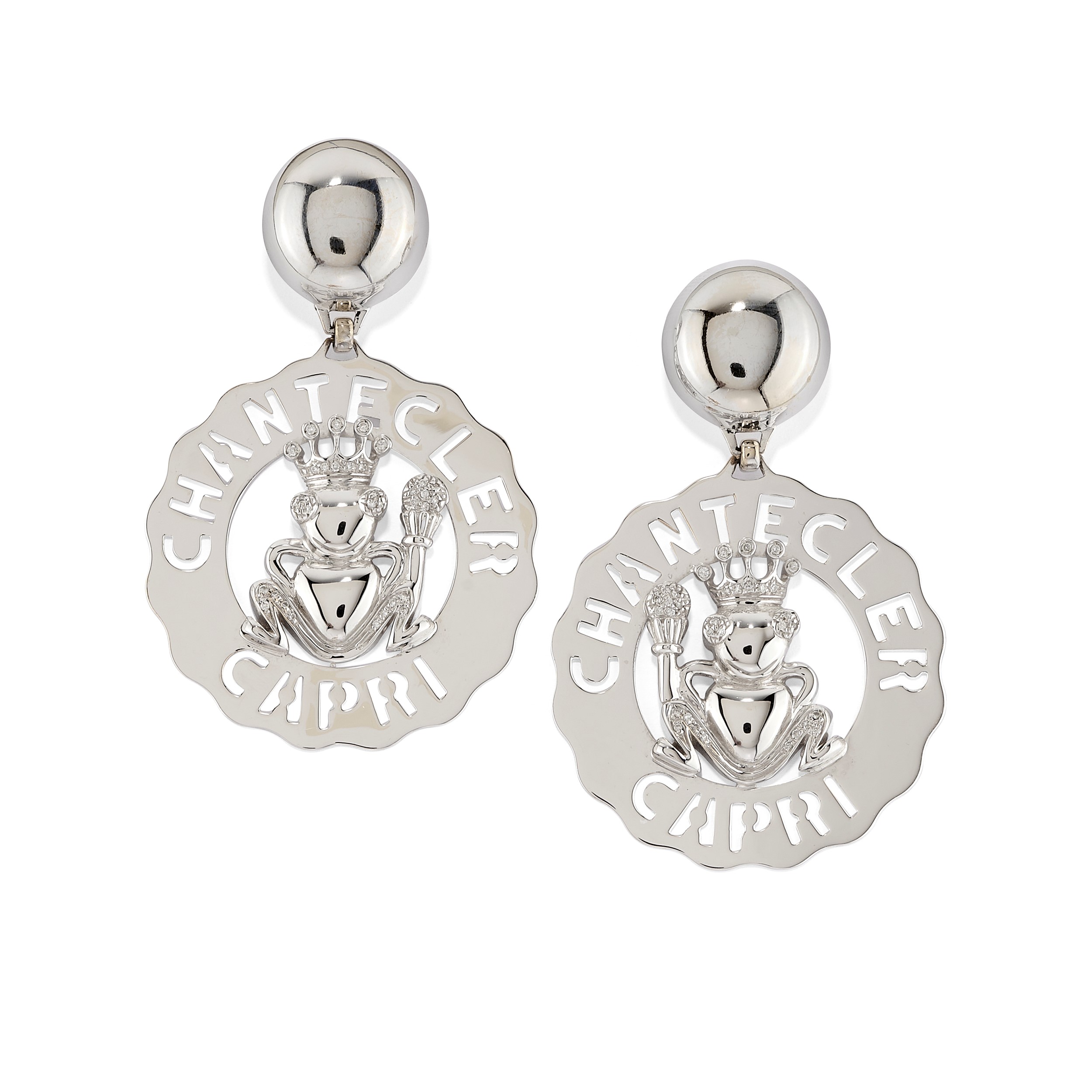 pendenti a doppio corpo con ranocchie, decoro traforato Chantecler Capri, chiusura a perno e farfalla.