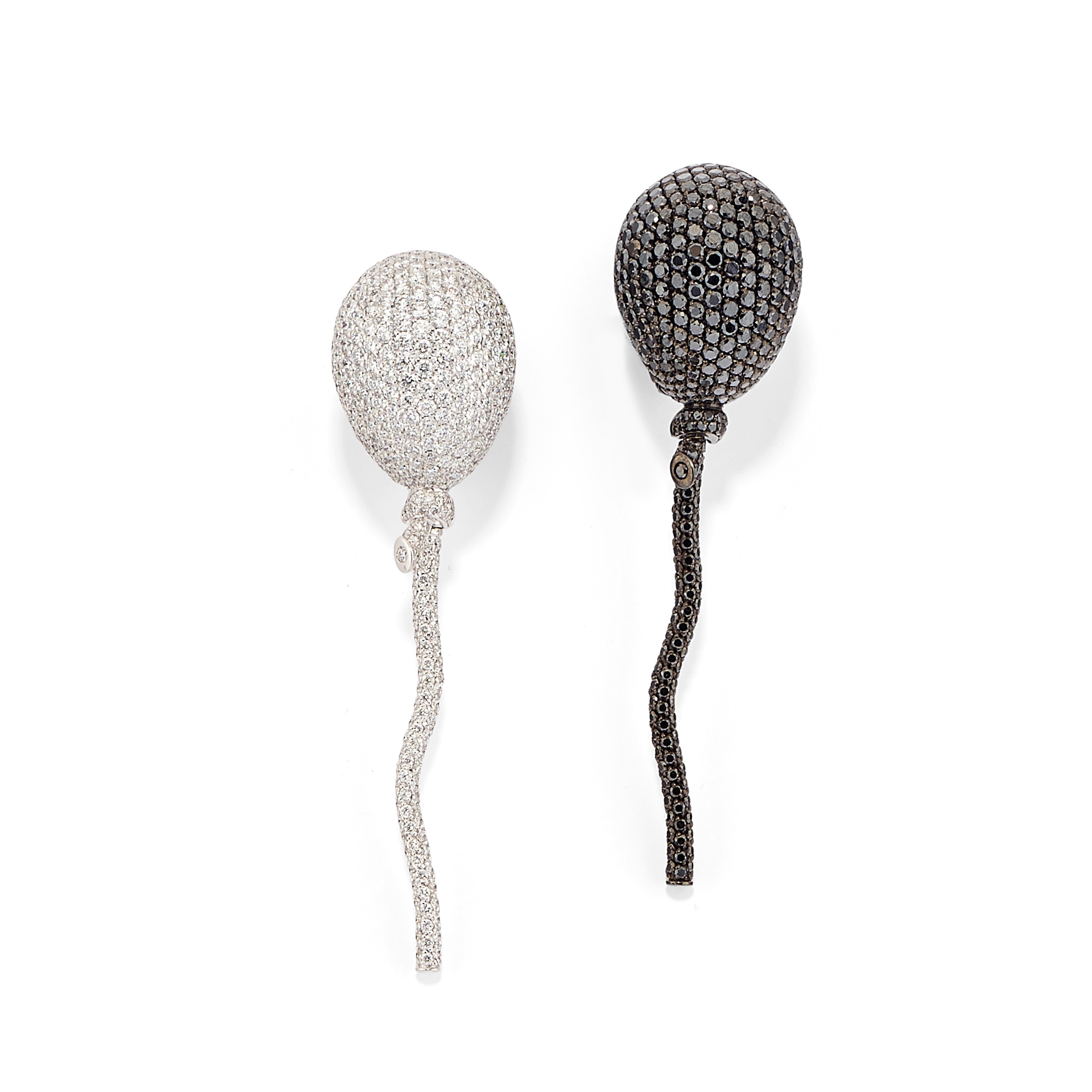 collezione Palloncino, pendenti, interamente decorati da diamanti incolore e neri taglio brillante per totale ct 7,96, con astuccio e garanzia.