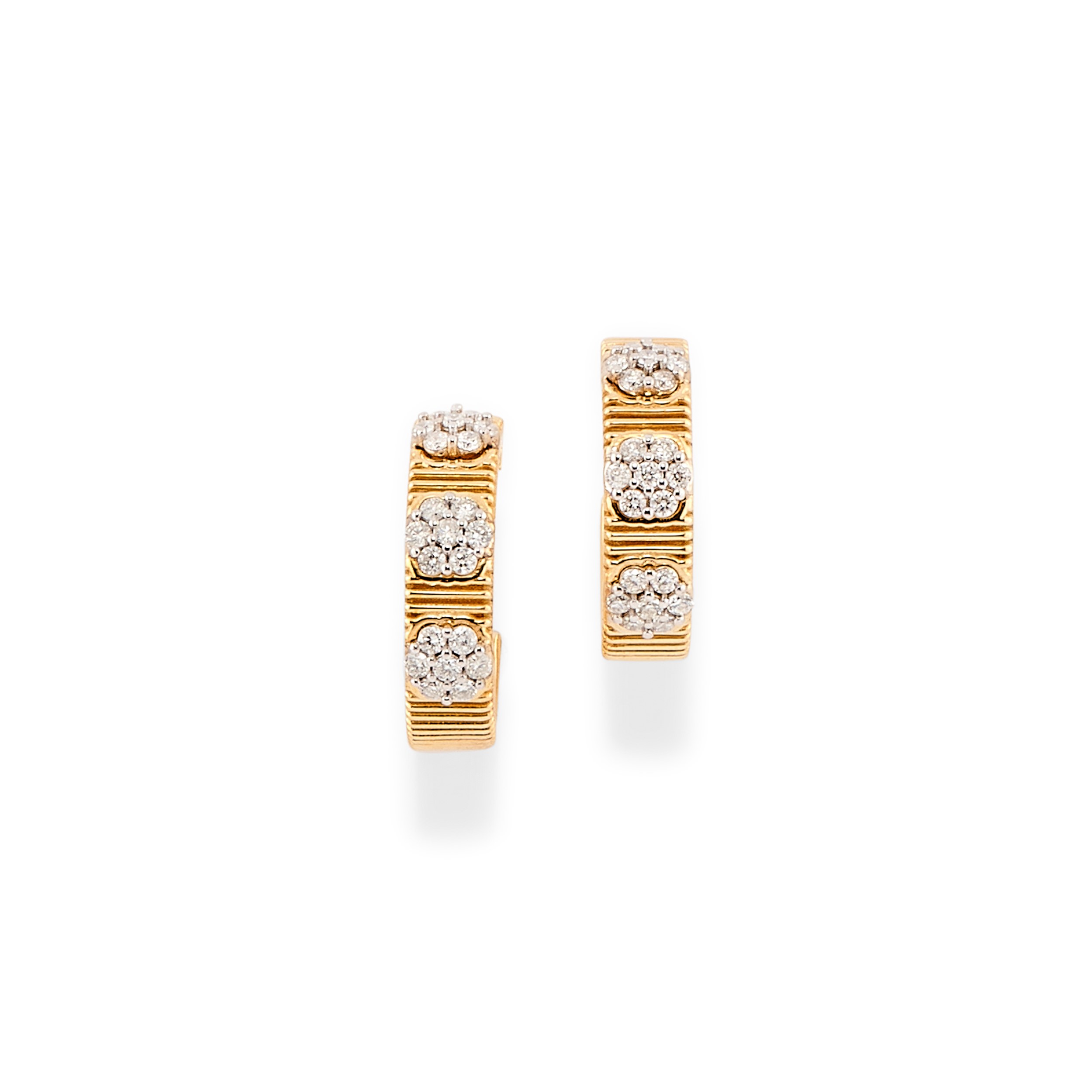 a mezza creola con motivi a fiore, in diamanti taglio brillante per totale ct 0,70 circa, chiusura perno e farfalla.