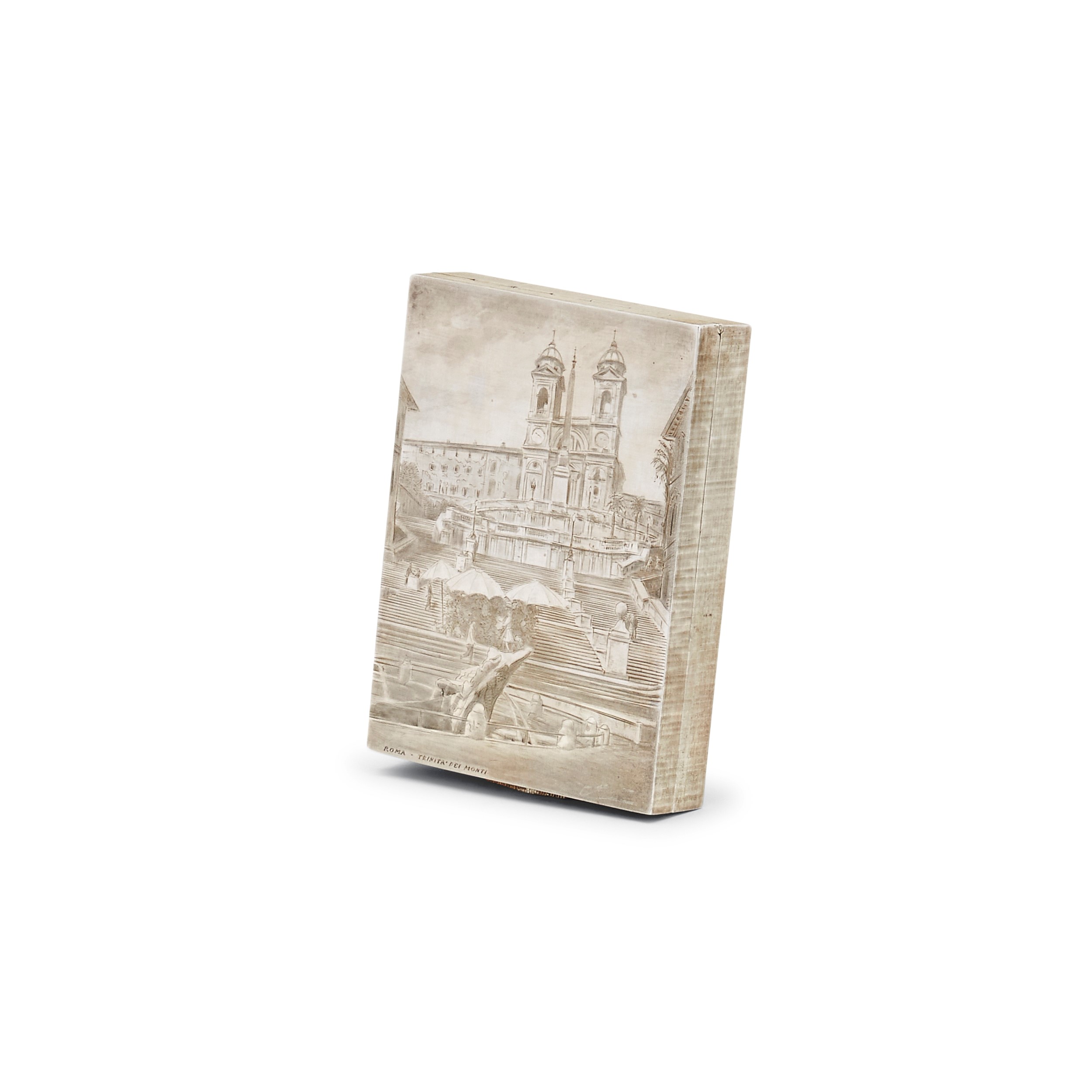 di forma rettangolare, con incisione raffigurante Trinità dei Monti, titolo 925.