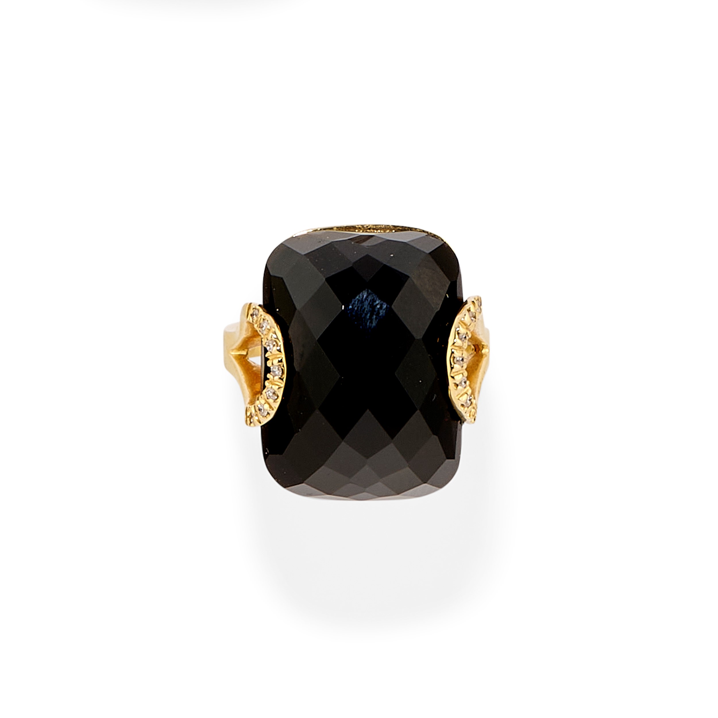 Sette gioielli nei tre ori 18k, diamanti, onice e cristallo di rocca