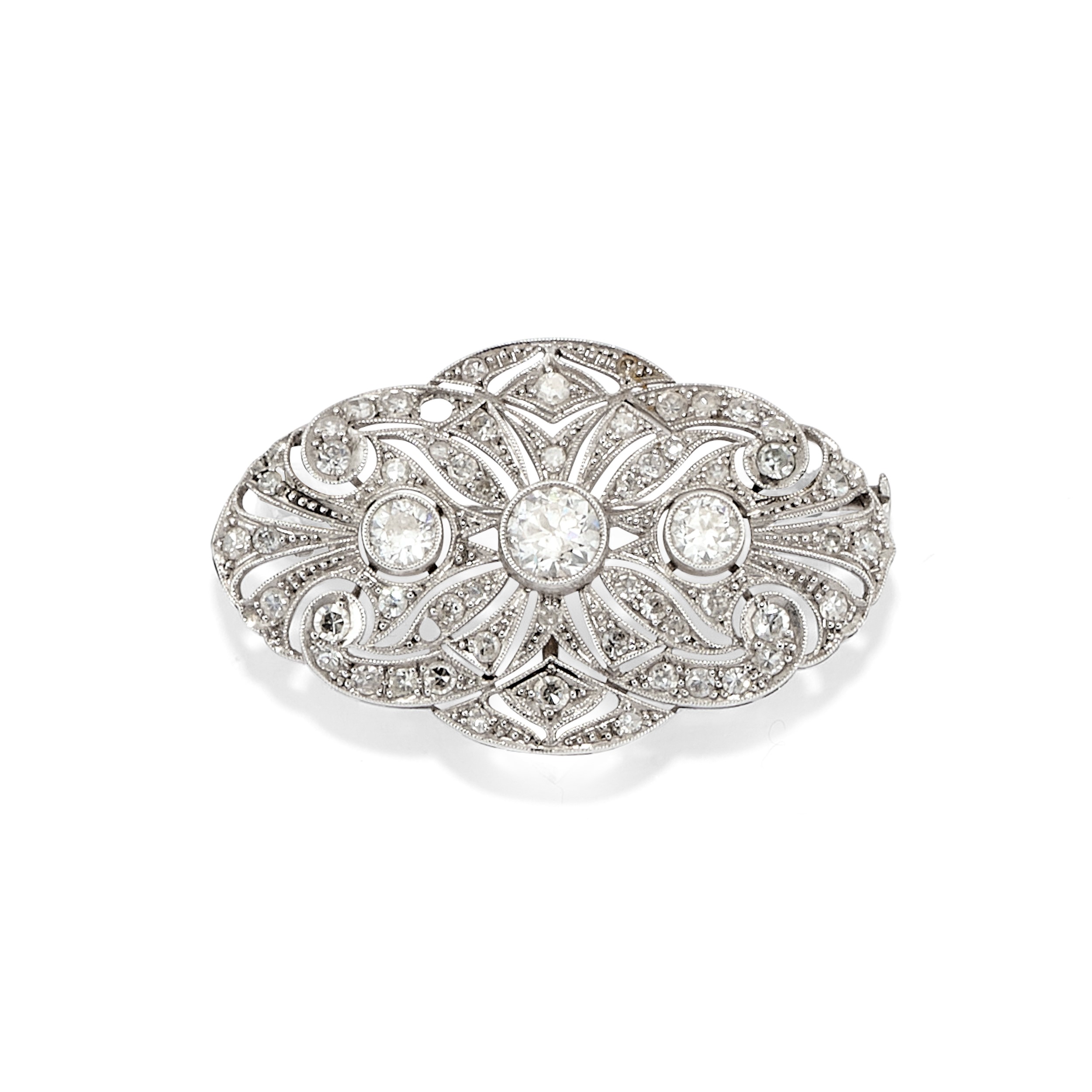 Spilla-pendente in platino, oro bianco 18k e diamanti, XX secolo
