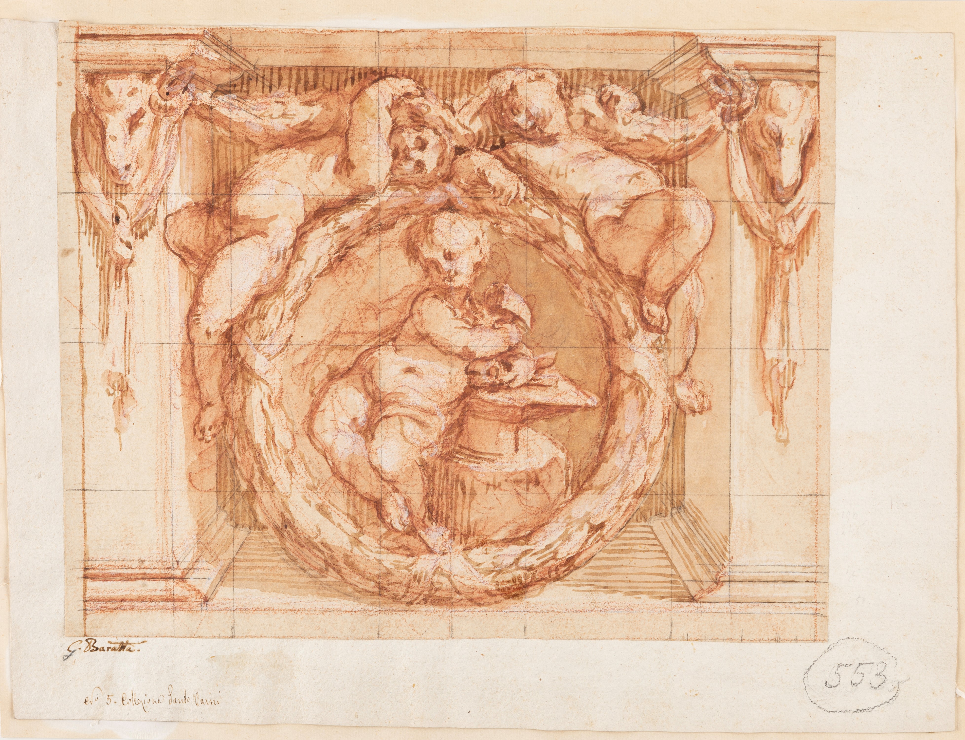 sulla carta di supporto, in basso a sinistra, iscrizione a penna: G. Baratta e altra iscrizione: N. 5. Collezione Santo Varni (Lugt 3531); in basso a destra iscrizione a matita con numero: 553