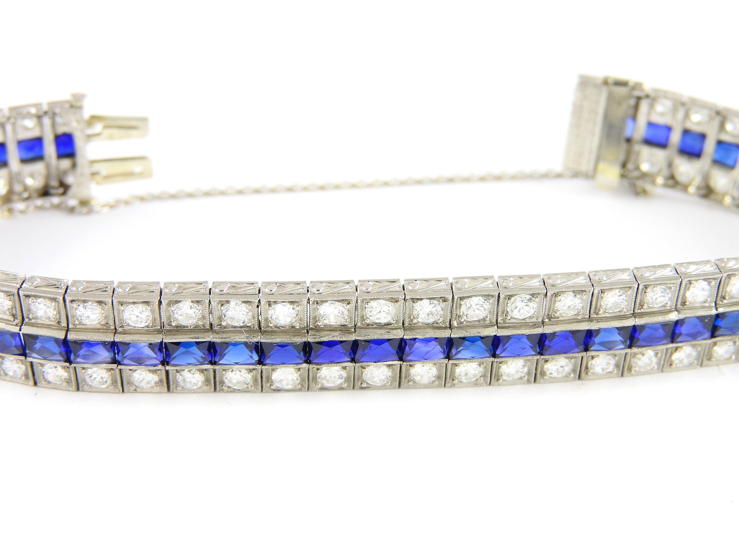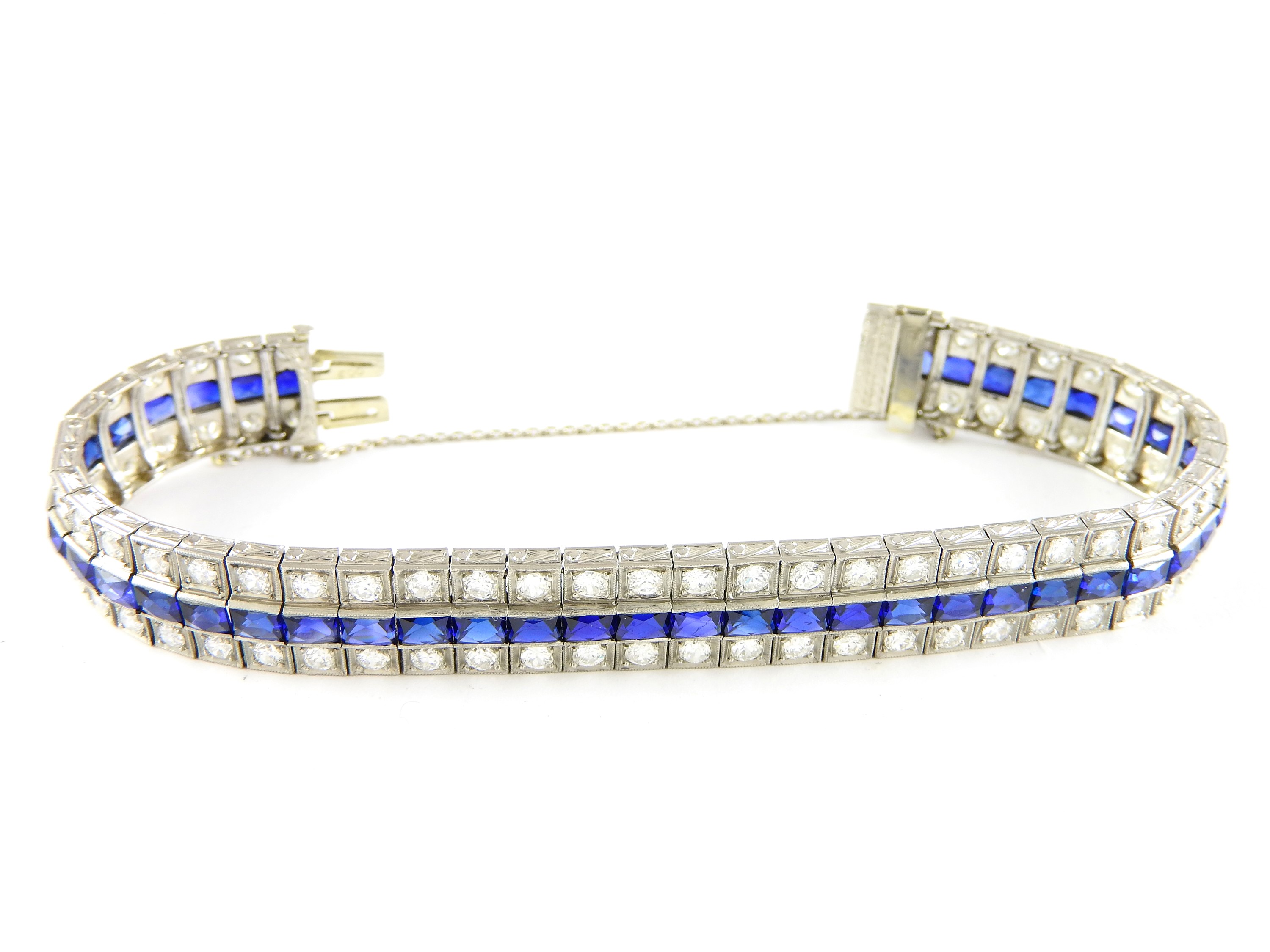 Bracciale in oro bianco, diamanti e pietre blu
