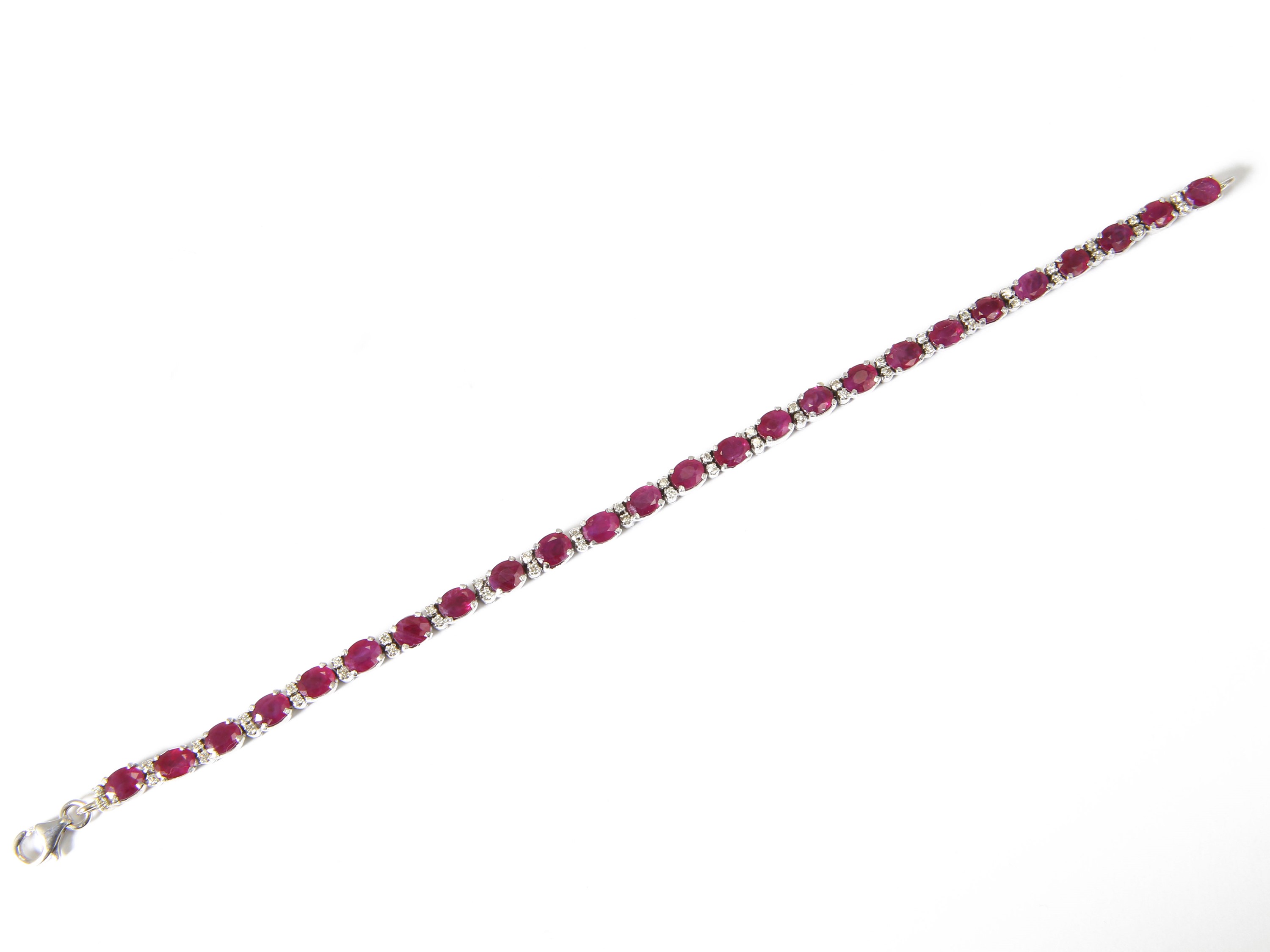 Bracciale tennis in oro bianco con diamanti e rubini glass filled