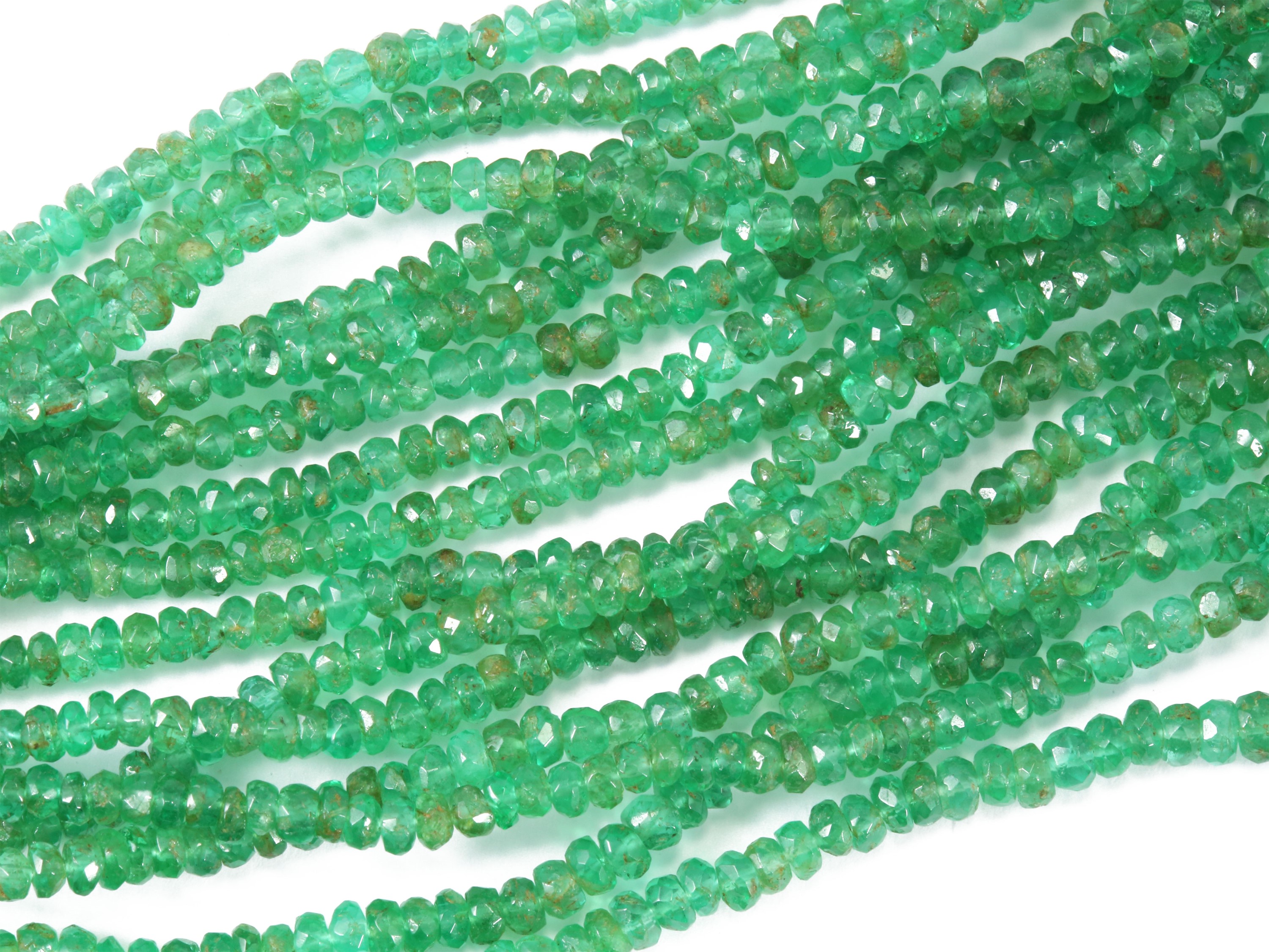 Collana di quindici fili di smeraldi sfaccettati con fermezza in oro giallo