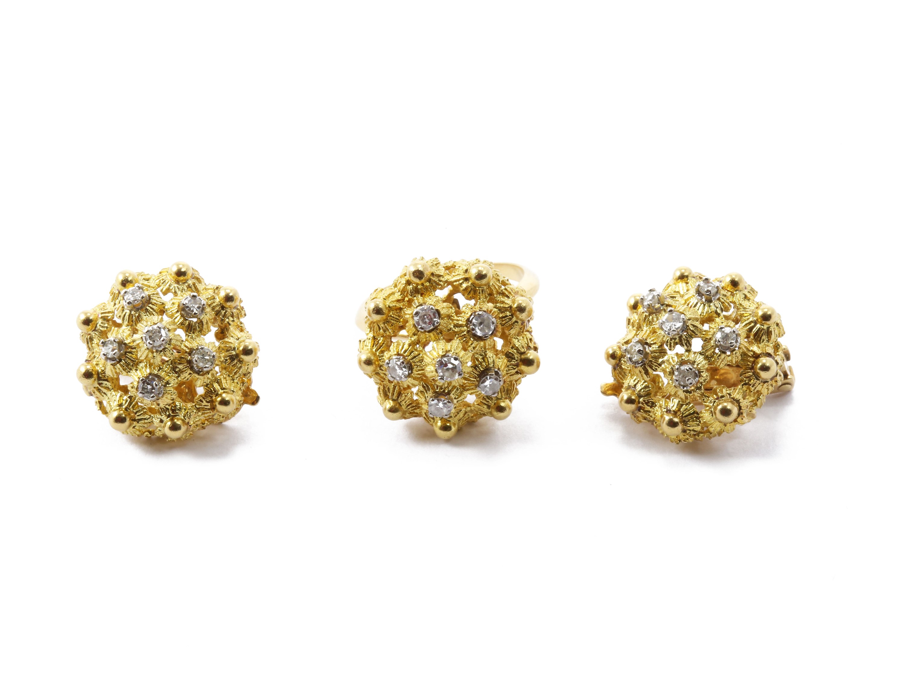 Demi parure anello e orecchini in oro bianco e giallo con diamanti