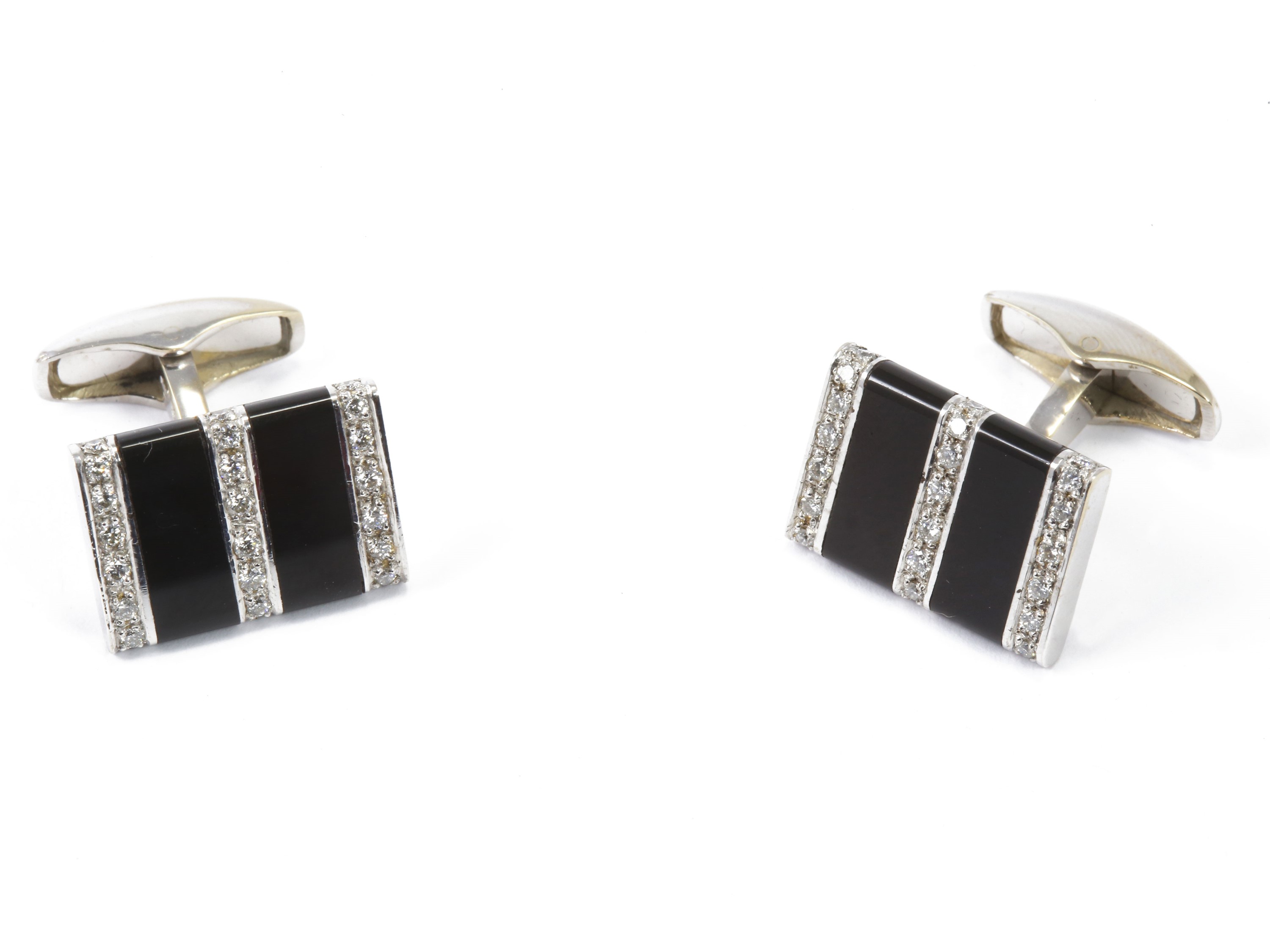 Gemelli in oro bianco con diamanti e onice