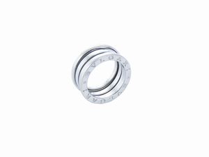 Anello a fascia bombata in oro bianco con diamanti, rubini, zaffiri e smeraldi