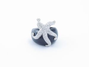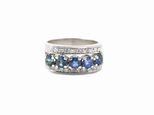 Anello a fascia in oro bianco con diamanti e zaffiri