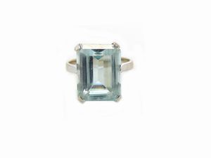 Anello in oro a basso titolo e argento con diamanti e quarzo ametista