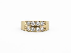Anello a fascia in oro bianco e giallo con diamanti e rubini