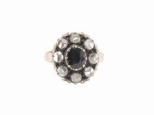 Anello a margherita in oro rosa 500/1000 e argento con diamanti e zaffiro