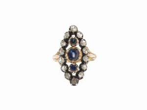 Anello figaro in oro giallo e argento con diamanti e zaffiri