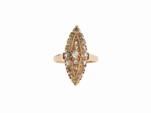 Anello a fascia in oro rosa 500/1000 e argento con diamanti e rubini