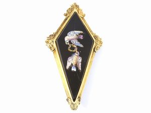 misure cm 6,5x3,5 seconda metà del XIX secolo raffigurante due colombi che giocano con una ghirlanda, presente [..]
