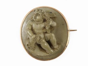 Spilla in oro giallo con cammeo in pietra lavica