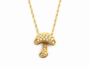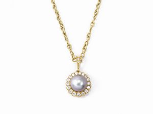 Catenina e pendente in oro giallo con diamanti e perla grigia coltivata