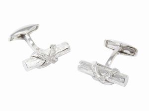 Coppia di anelli a onda in oro bianco con diamanti, rubini e zaffiri