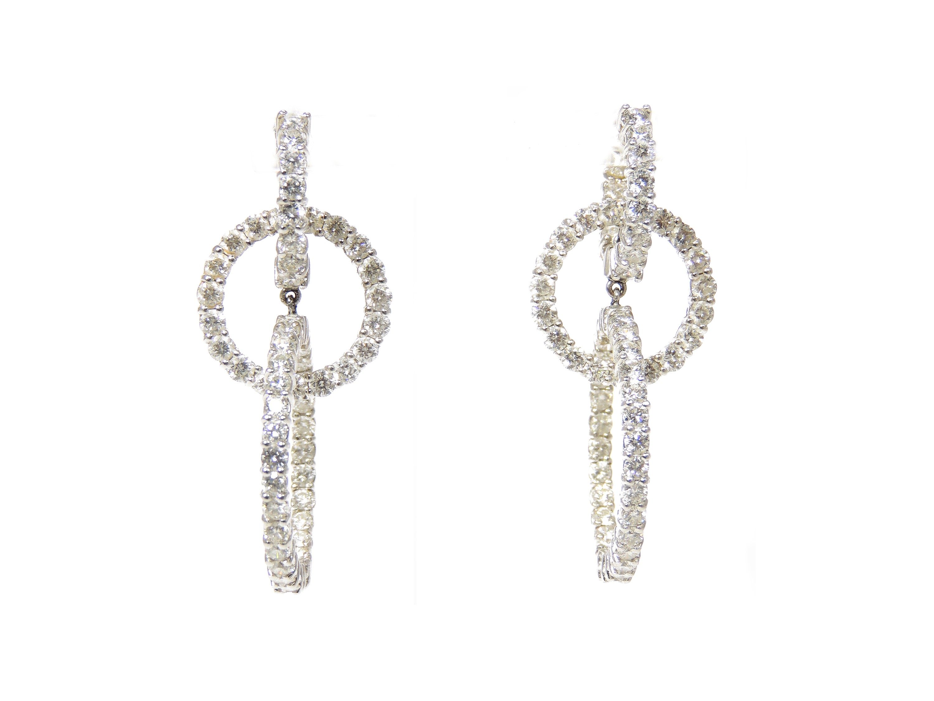 Orecchini a cerchi pendenti in oro bianco con diamanti