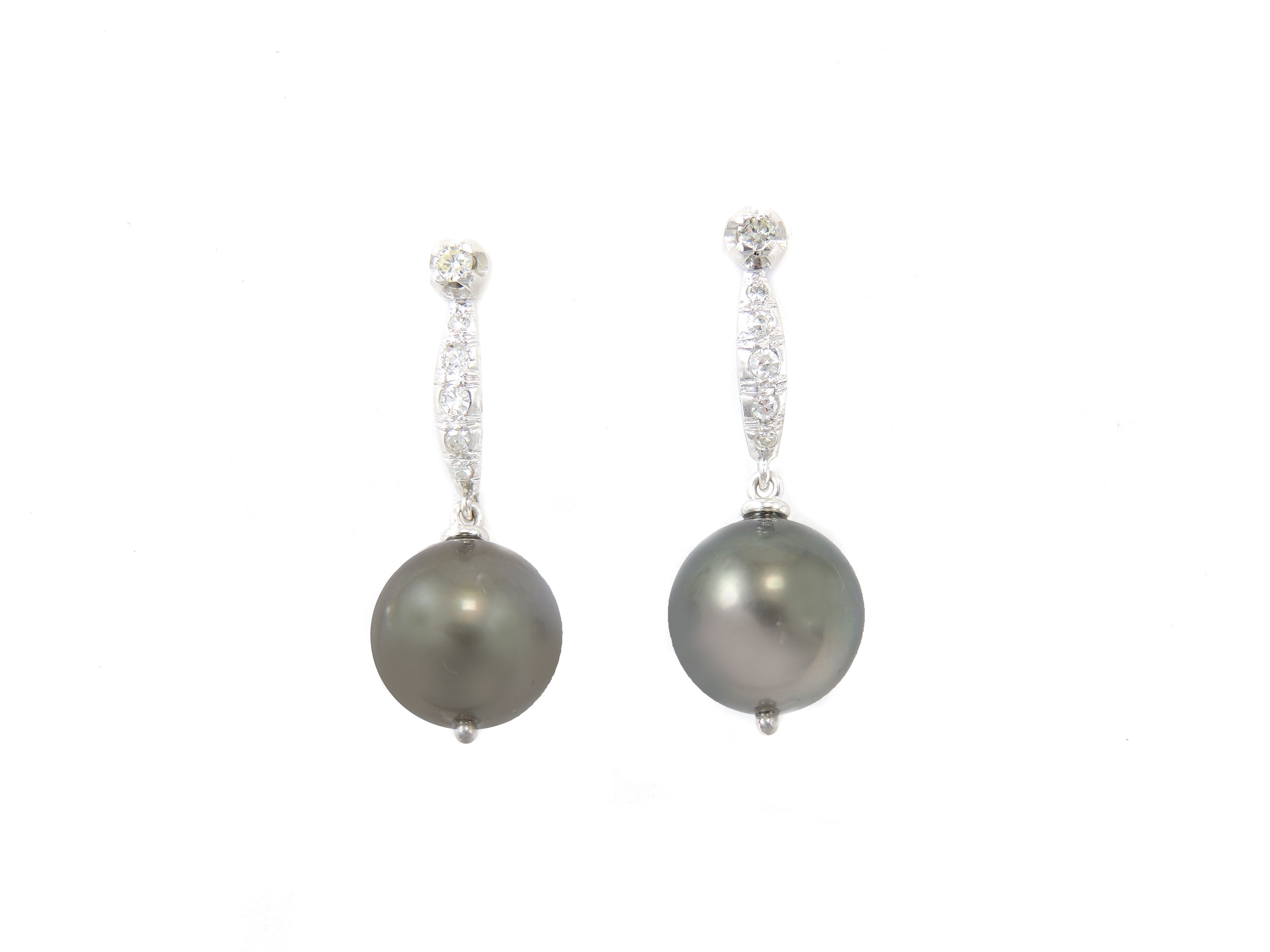 Orecchini pendenti in oro bianco con diamanti e perle coltivate Tahiti