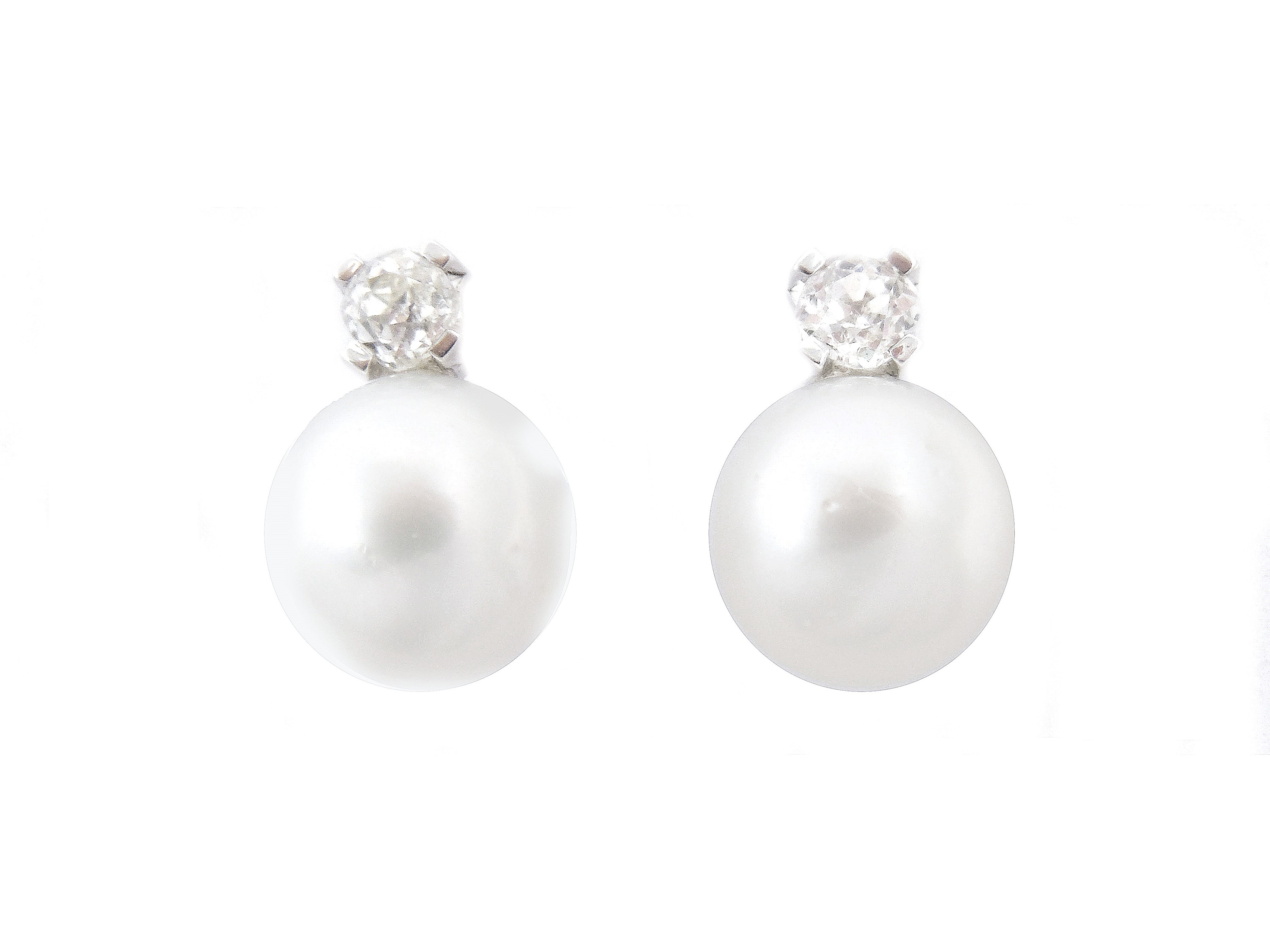 Orecchini pendenti in oro bianco con diamanti e perle coltivate South Sea bianch [..]