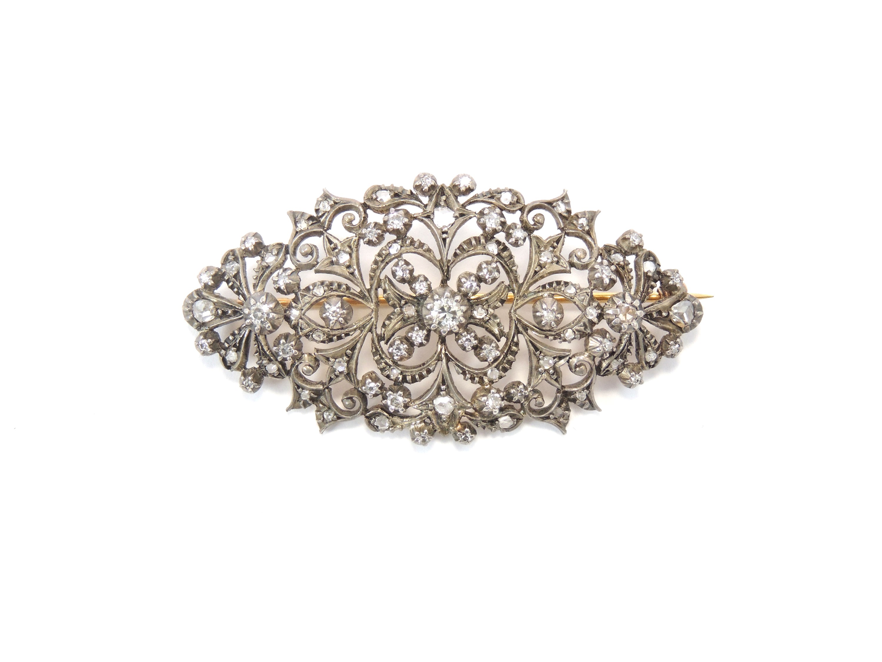 Spilla a motivi floreali in oro giallo e argento