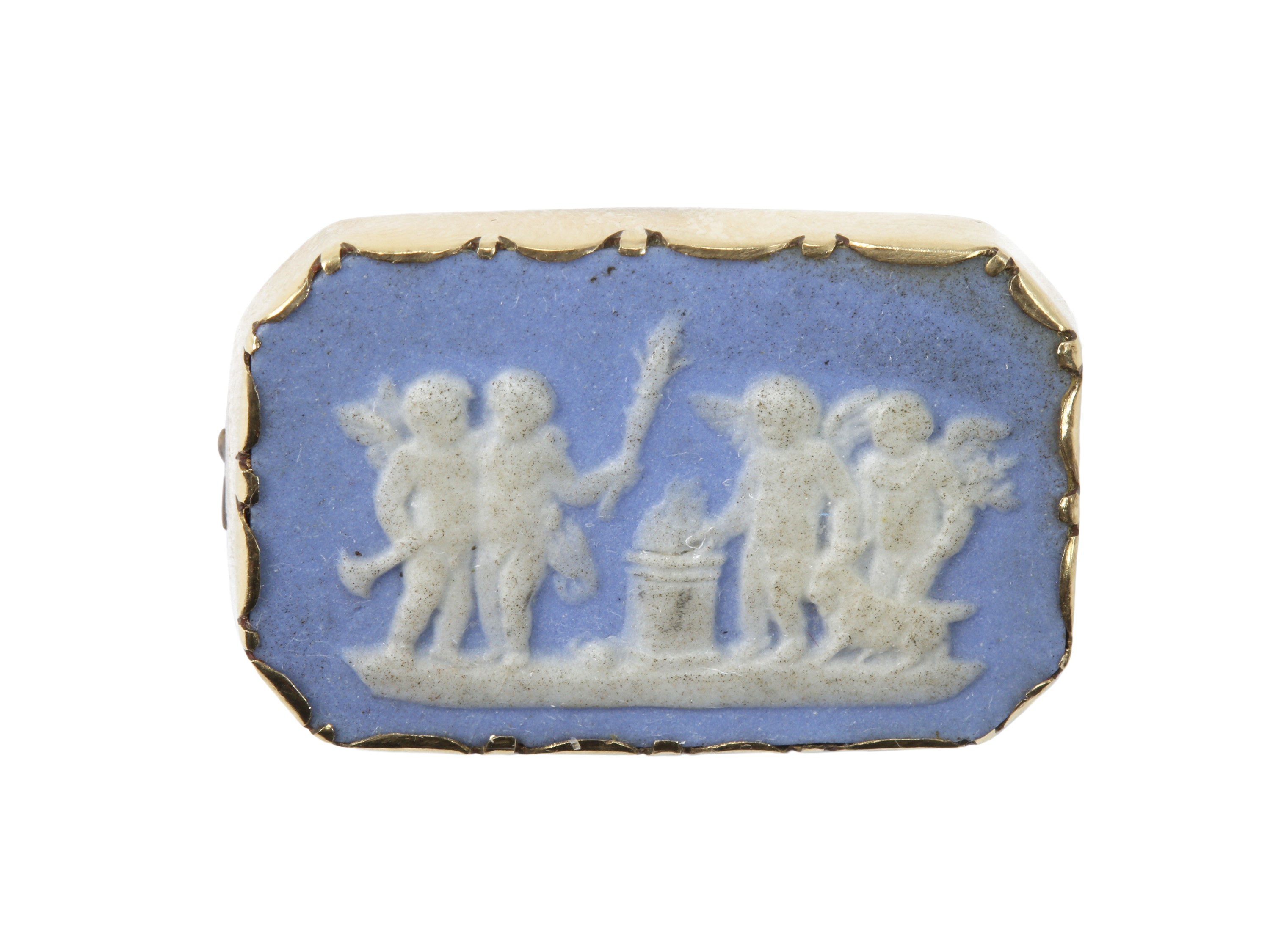 Spilla in oro giallo a basso titolo con cammeo in ceramica wedgwood