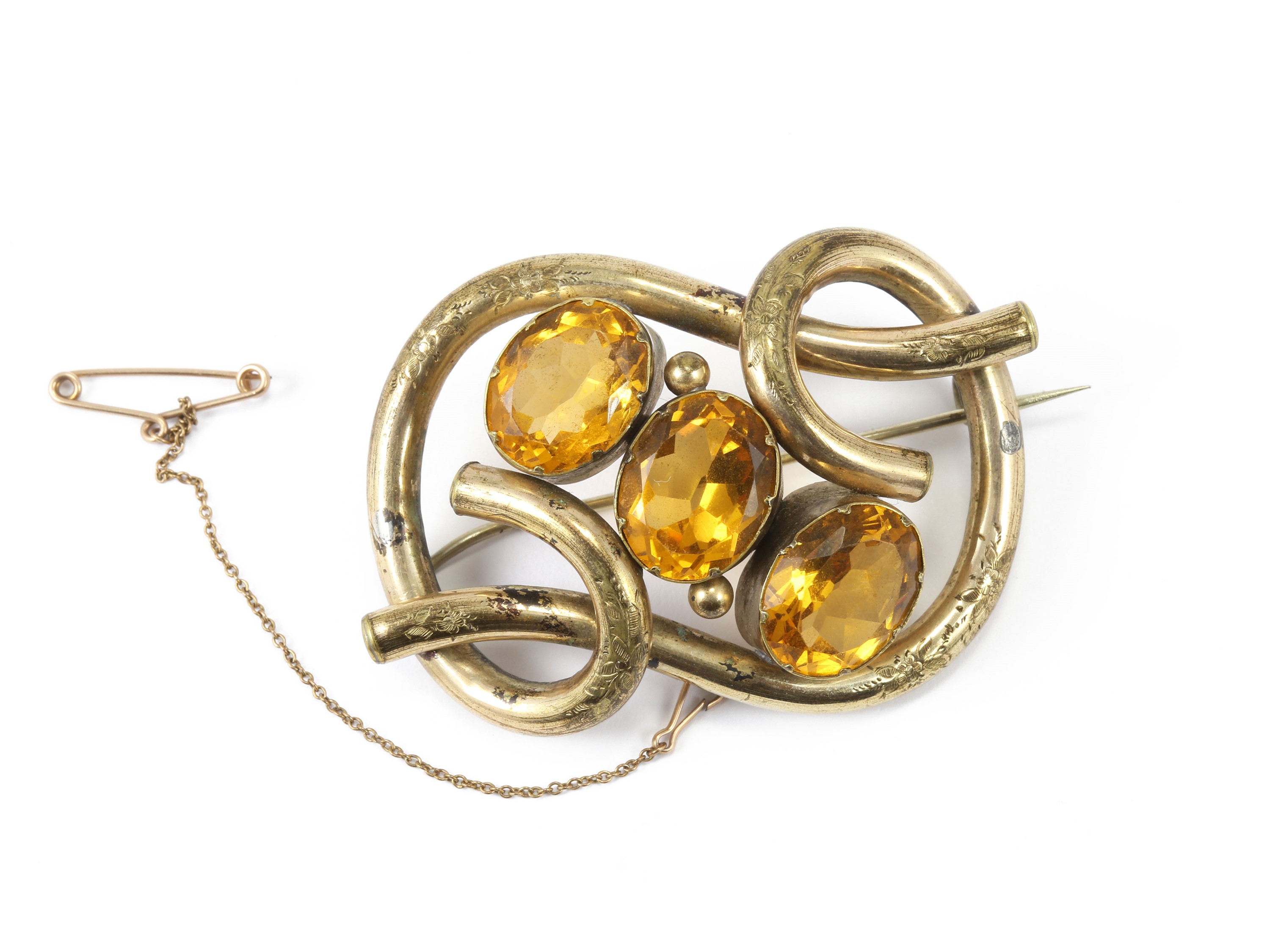 Spilla in oro rosa a basso titolo con quarzi citrini
