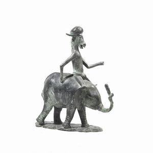 PAOLO MAIONE (Reggello 1965) Asino ed Elefante scultura in bronzo cm 46,8x36,5x15
