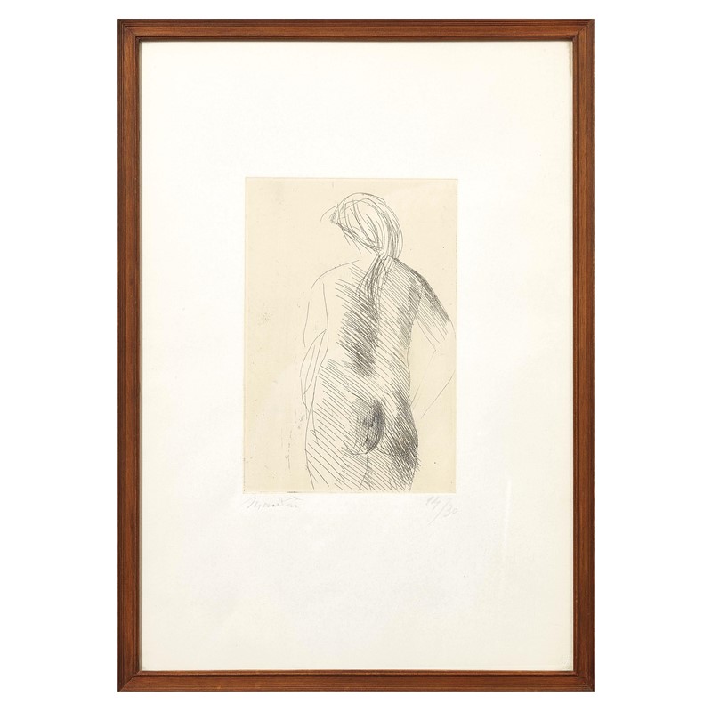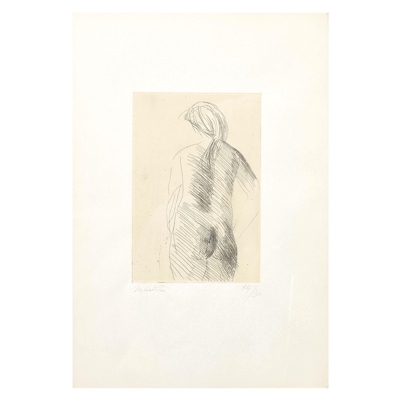 GIACOMO MANZU' (Bergamo 1908-Ardea 1991) Nudo di schiena 1967 acquaforte su carta Oxford cm 50x35 firmata e numerata 14/30 in basso a destra timbro a secco Libreria Prandi