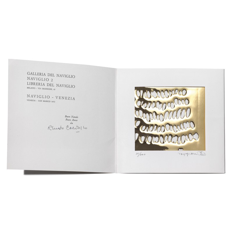 TOYOFUKU TOMONORI (Kurume, Giappone 1925) Biglietto d'Auguri lamina traforata su cartoncino cm 17x14 esemplare n.: 21/200 firmato e numerato in basso a matita con ideogramma giapponese biglietto d'auguri