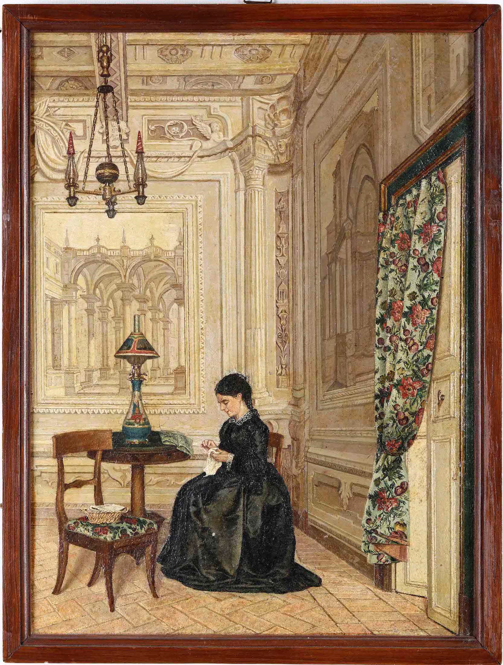 Anonimo del XIX secolo Figura femminile in un interno