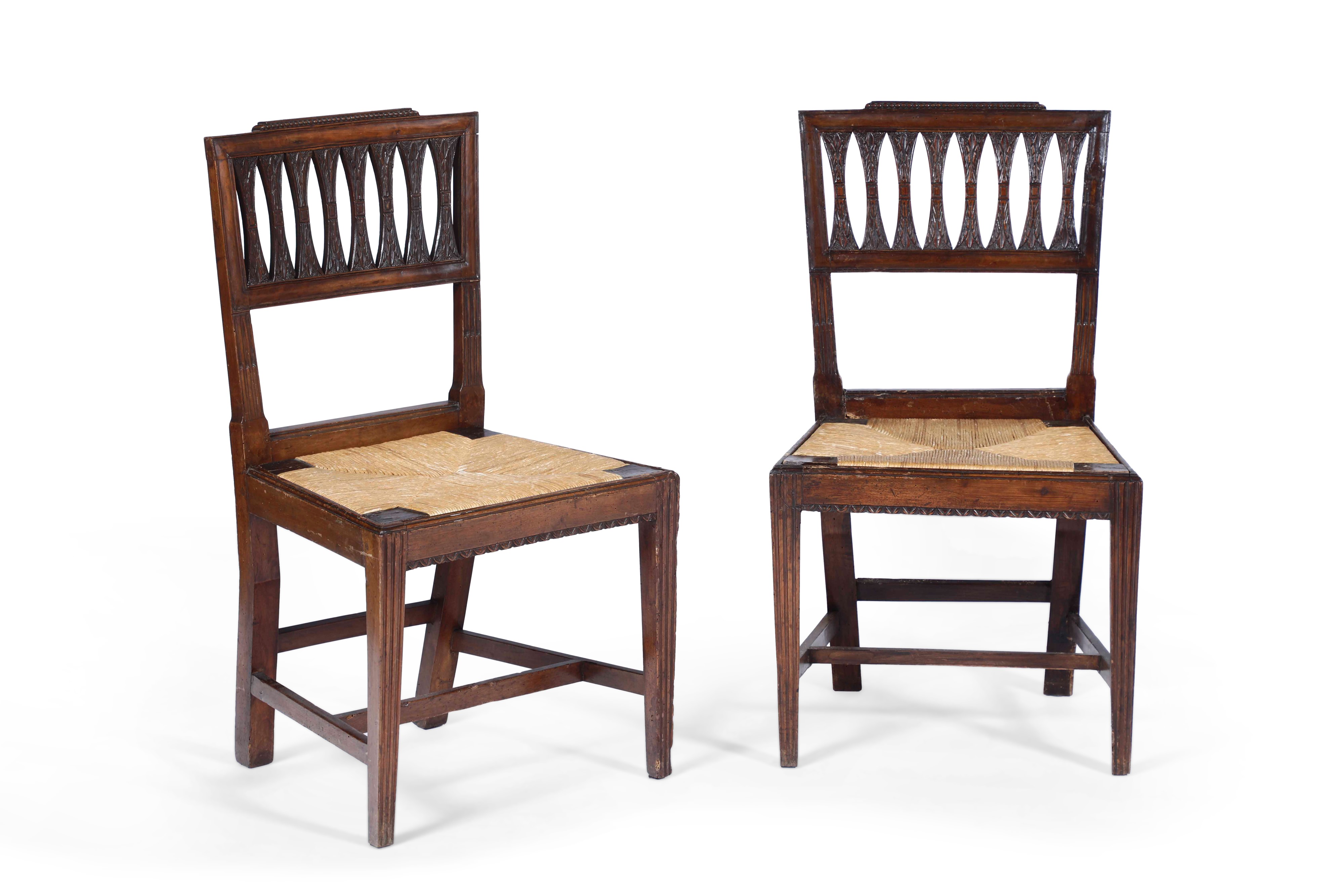 Coppia di sedie in mogano con sedute in paglia. Inghilterra, fine XVIII secolo