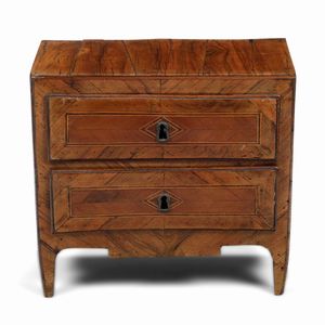 Angoliera lastronata in radica e filettata. XVIII secolo