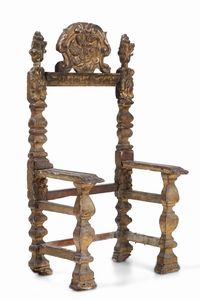 Base in legno intagliato e dipinto con cherubuni. XVII-XVIII secolo