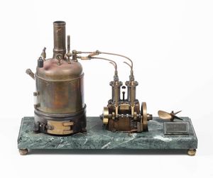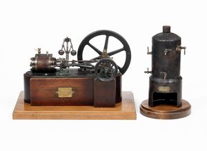 Caladaia a vapore giocattolo marcata GBM (1907-1912) e macchina a vapore con cilindro [..]