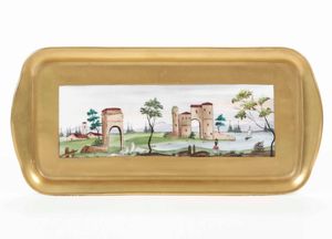 Lotto composto da due vasi in coperchio, un vassoio e un vasetto in porcellana