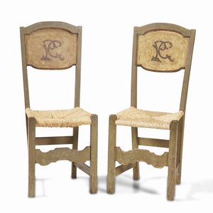 Coppia di sedie in legno dipinto. XVII-XVIII secolo