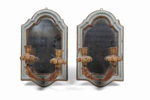Coppia di specchierine in legno dipinto. XVIII secolo