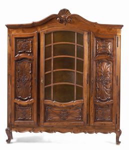 Libreria in stile barocco piemontese in noce intagliato