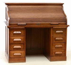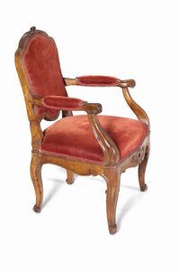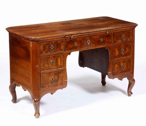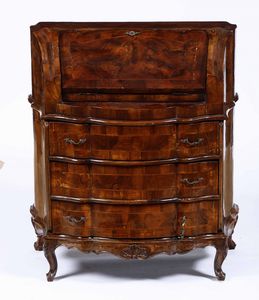 Cassettone a ribalta lastronato in noce e radica di noce. Veneto, stile XVIII se [..]