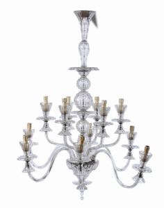Lampadario a 12 luci in vetro incolore. XX secolo