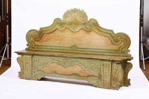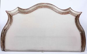 Cornice sagomata in legno intagliato argentato a mecca. XVIII secolo