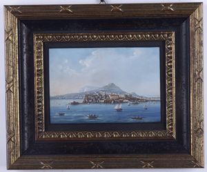 Lotto di tre gouaches con vedute del Golfo di Napoli col Vesuvio. XIX secolo