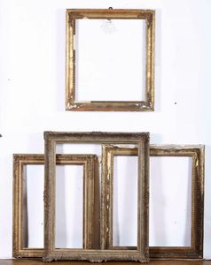 Lotto di quattro cornici in legno intagliato tra cui due francesine
